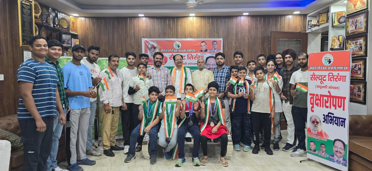 कामना करते हुए सभी बच्चों को आशीर्वाद प्रदान किया इस अवसर पर सभी बच्चों ने राष्ट्रगीत गाया व वंदे मातरम, भारत माता की जय के साथ गगन भेदी नारे लगाए माननीय प्रदेश अध्यक्ष जगदीश लाल पावा जी ने तिरंगे की आन बान शान व तिरंगे के इतिहास के विषय में उपस्थित जनसमूह व बच्चों को अवगत कराया।