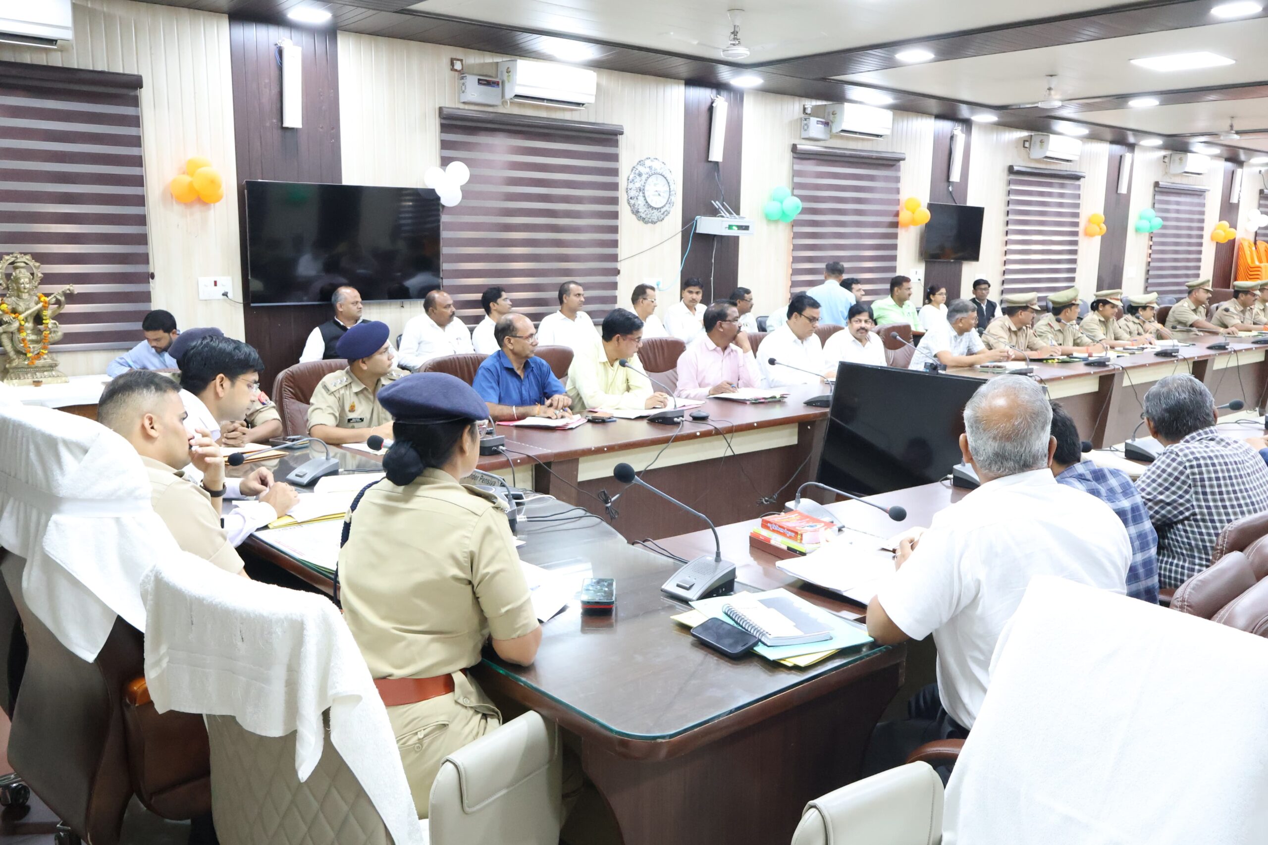 निस्तारण संतोषजनक हो सके।पुलिस अधीक्षक ने कहा कि जनता की शिकायतों को प्राथमिकता के आधार पर निस्तारण करें। शिकायत के निस्तारण में किसी प्रकार की लापरवाही संज्ञान में ना आए यह प्रत्येक दशा में सुनिश्चित करें। गैंगस्टर की कार्रवाइयों को भी चिन्हित करें जिससे प्रभावी कार्रवाई सुनिश्चित की जा सके । पुलिस अधीक्षक ने अपर पुलिस अधीक्षक एवं समस्त क्षेत्राधिकारियों को निर्देशित करते हुए कहा कि जो गैंगस्टर एवं गुंडा एक्ट की कार्रवाई की जा रही है उनका परीक्षण कर लें। जिलाधिकारी ने समस्त संबंधित अधिकारियों को निर्देशित करते हुए कहा कि जनपद में बड़े-बड़े भूमाफियाओं को चिन्हित कर कार्रवाई सुनिश्चित की जाए। जिलाधिकारी ने कहा कि थाना दिवस पर जो शिकायत प्राप्त होती हैं उनको प्राथमिकता के आधार पर निस्तारण किया जाए भूमि विवादों की शिकायतों को संज्ञान में लेते हुए निस्तारण करें और उन्होंने कहा कि आवश्यक कार्रवाई भी संज्ञान में लाई जाए। *इसके उपरांत यातायात सड़क सुरक्षा की बैठक का आयोजन किया गया।* जिसमें लोक निर्माण विभाग के एक्सईएन सुनील कुमार के द्वारा विभाग बार क्या-क्या कारवाइयां की गई हैं उसके विषय में जिलाधिकारी को अवगत कराया जिलाधिकारी ने संबंधित अधिकारियों को निर्देशित करते हुए कहा कि कार्रवाइयों की प्रगति बढ़ाई जाए। जिलाधिकारी ने संबंधित अधिकारी को निर्देशित करते हुए कहा कि जनपद में ओवरलोड वाहन किसी भी दशा में ना चले जनपद में एक अभियान चलाया जाए बिना हेलमेट दो पहिया वाहन ना चले इसको प्रत्येक दशा में सुनिश्चित किया जाए। बबराला इंदिरा चौक से राजघाट मार्ग के चौड़ीकरण को लेकर विस्तार पूर्वक चर्चा की गई एवं शासन को प्रस्ताव भेजने के लिए जिलाधिकारी ने संबंधित अधिकारी को निर्देशित किया।जिलाधिकारी ने स्पीड ब्रेकर को लेकर भी निर्देशित करते हुए कहा की कार्रवाई सुनिश्चित की जाए। जनपद में संचालित एंबुलेंस के विषय में जिलाधिकारी ने जानकारी प्राप्त की एवं संबंधित अधिकारी को निर्देशित करते हुए कहा कि कितनी एंबुलेंस पंजीकृत हैं उसको देखा जाए जो एंबुलेंस बिना पंजीकरण के चल रही हैं उनके खिलाफ कार्रवाई भी संज्ञान में लाएं। अतिक्रमण हटाने को लेकर जिलाधिकारी ने समस्त एसडीएम एवं समस्त क्षेत्राधिकारियों को निर्देशित करते हुए कहा कि शहर के जो प्रमुख मार्ग हैं उनको अतिक्रमण मुक्त करने की कार्रवाई सुनिश्चित की जाए। जिलाधिकारी ने जिला विद्यालय निरीक्षक को निर्देशित करते हुए कहा कि विद्यालयों में यातायात नियमों के पालन करने हेतु जागरूकता कराए और उन्होंने कहा कि जिन विद्यालयों में वाहन चल रहे हैं उनको चेैक किया जाए वह पंजीकृत हैं या नहीं यह प्रत्येक दशा में देख लें। इस अव
