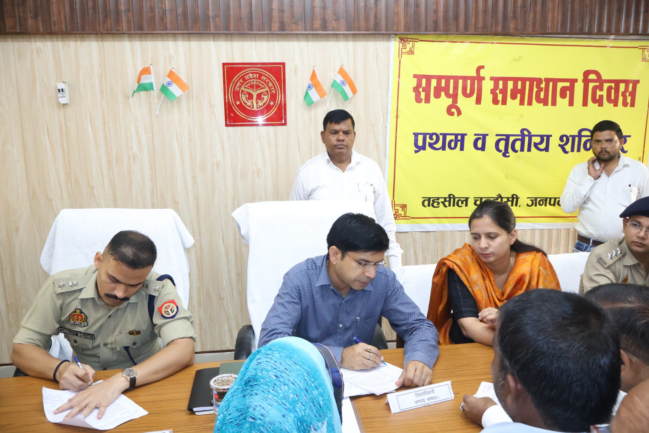 सम्भल ( परिपाटी न्यूज ) बहजोई 21 सितंबर 2024 जनसामान्य की शिकायतों के त्वरित निस्तारण के उद्देश्य से जनपद की तीनों तहसीलों में संपूर्ण समाधान दिवस का आयोजन किया गया। जिलाधिकारी डॉ राजेंद्र पैंसिया एवं पुलिस अधीक्षक कृष्ण कुमार बिश्नोई की अध्यक्षता में तहसील चंदौसी में संपूर्ण समाधान दिवस आयोजन किया गया। संपूर्ण समाधान दिवस में जिलाधिकारी ने शिकायतकर्ताओं की समस्या सुनकर मौके पर अधिकारियों को निर्देश देते हुए कहा कि शिकायतें लंबित न रखी जाये,शिकायतों को गम्भीरता से लिया जाये। संपूर्ण समाधान दिवस के दौरान पुलिस विभाग से संबंधित शिकायतों को सुना एवं संबंधित थानाध्यक्षों को निस्तारण के निर्देश दिए। तहसील