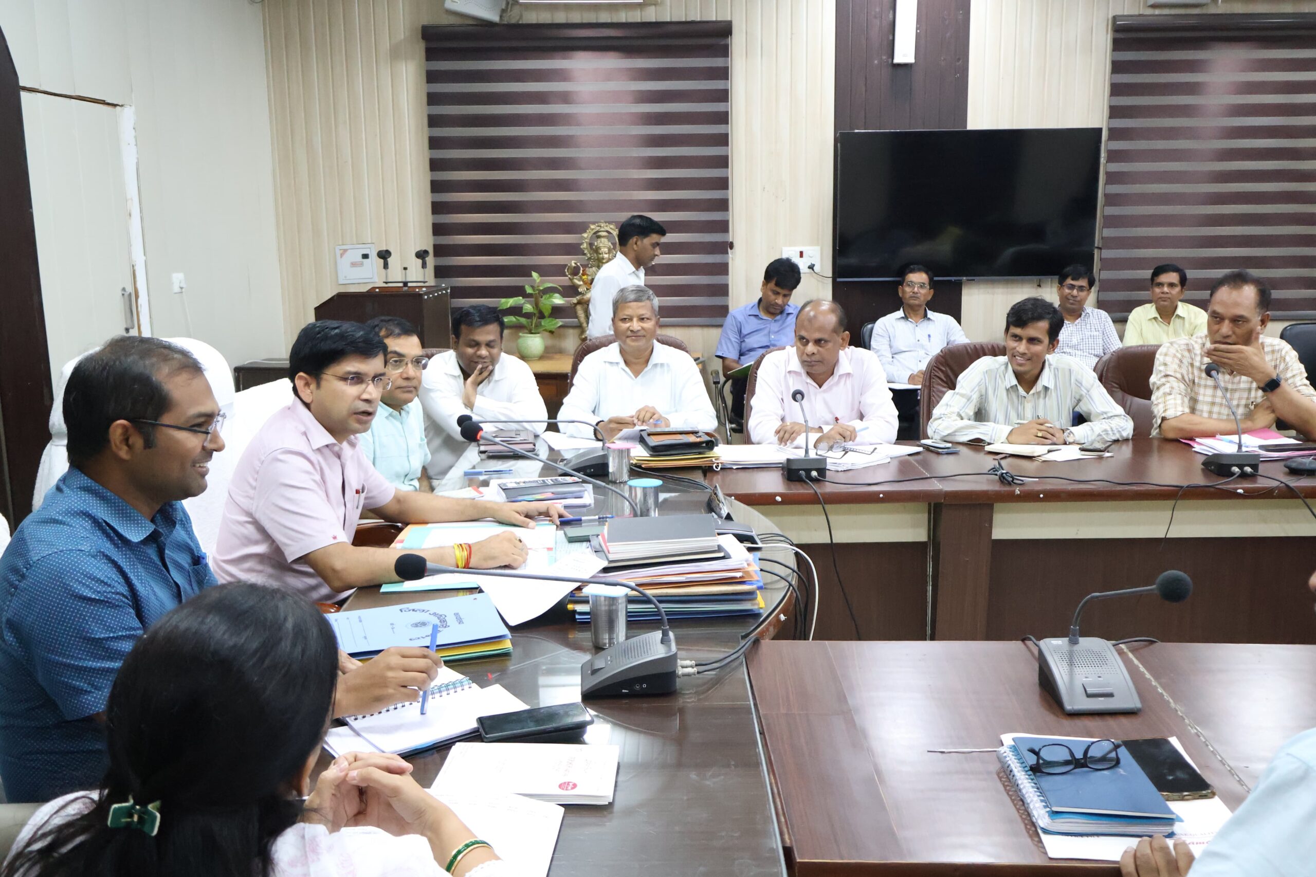गुणवत्तापूर्ण आख्या लगाकर शिकायत का निस्तारण करें। स्पेशल क्लोज के विषय में भी विस्तार पूर्वक जानकारी दी। अपर जिलाधिकारी ने कहा कि शिकायत निस्तारण के समय शिकायतकर्ता को भी शिकायत के निस्तारण के विषय में अवगत कराया जाए। जिलाधिकारी ने विद्यालयों के निरीक्षण को लेकर संबंधित अधिकारियों को निर्देशित करते हुए कहा कि साप्ताहिक निरीक्षण करें और सभी अपने निरीक्षण पूर्ण करें। जिलाधिकारी ने कैटल कैचर को लेकर भी जानकारी प्राप्त की और उन्होंने संबंधित अधिकारी को निर्देशित करते हुए कहा कि जहां कैटल कैचर नहीं है वहां कैटल कैचर क्रय किए जाएं। केयरटेकर के प्रशिक्षण को लेकर भी जिलाधिकारी ने संबंधित को आवश्यक दिशा निर्देशित किया। जिलाधिकारी ने संबंधित को निर्देशित करते हुए कहा कि गोवंशों को गौशाला में संरक्षित किया जाए जुनावई में डिवाइडर पर गंदगी को लेकर भी जिलाधिकारी ने संबंधित अधिकारी को निर्देशित करते हुए कहा कि साफ सफाई करना सुनिश्चित करें। विकासखंड अधिकारी बहजोई एवं अधिशासी अधिकारी नगर पालिका बहजोई को निर्देशित करते हुए कहा कि एक अभियान चलाते हुए गोवंशों को संरक्षित किया जाए। *इसके उपरांत जल जीवन मिशन की बैठक का आयोजन किया गया।* जिसमें पंप हाउस, डिस्ट्रीब्यूशन पाइपलाइन, एफएसटीसी, ओवरहेड टैंक, सोलर सिस्टम, सड़कों की मरम्मत,भूमि विवाद आदि को लेकर विस्तारपूर्वक चर्चा की गई। जिसमें एसपीएमएल, एल सी इंफ्रा, एनकेजी को सीएसआर फंड के माध्यम से कार्य कराने को लेकर भी निर्देशित किया। जिलाधिकारी ने कहा कि जो ट्यूबवेल आवंटित हैं उनका कार्य पूर्ण किया जाए तथा सात दिवस के बाद एक्सईएन जल निगम रिपोर्ट लेकर आए। जिलाधिकारी ने उप जिलाधिकारी गुन्नौर को निर्देशित कराते हुए कहा कि भूमि आवंटित करना सुनिश्चित करें। और उन्होंने कहा कि डिस्ट्रीब्यूशन पाइपलाइन की गुणवत्ता को देखा जाए। जहां पर पाइपलाइन के कारण सड़क खराब हैं वहां सड़कों की मरम्मत कराई जाए। ओवरहेड टैंक का कार्य प्रत्येक दशा में पूर्ण कराया जाए। सोलर पैनल लगाने को लेकर भी जिलाधिकारी ने आवश्यक दिशा निर्देश दिए। इस अवसर पर मुख्य विकास अधिकारी गोरखनाथ भट्ट, अपर जिलाधिकारी प्रदीप वर्मा, परियोजना निदेशक डीआरडीए ज्ञान सिंह, उप जिलाधिकारी गुन्नौर दीपक चौधरी, उप जिलाधिकारी चंदौसी नीतू रानी, उप जिलाधिकारी संभल विनय कुमार मिश्रा, मिश्रा डिप्टी कलेक्टर निधि पटेल, डिप्टी कलेक्टर आनंद कटारिया, जिला विकास अधिकारी राम आशीष एवं समस्त संबंधित अधिकारी कर्मचारी उपस्थित रहे।