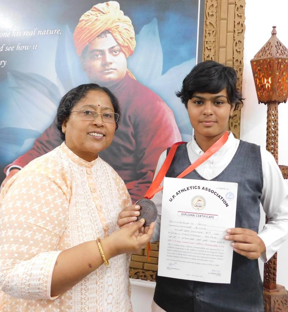 बिजनौर (परिपाटी न्यूज़)।उत्तर प्रदेश के साईं स्टेडियम, लखनऊ में आयोजित एथलेटिक्स प्रतियोगिता में मॉडर्न एरा स्कूल, बिजनौर की कक्षा दसवीं की छात्रा गिनी सिंह ने अपने जिले एवम् विद्यालय का नाम रोशन करते हुए उत्तर प्रदेश एथलेटिक्स एसोसिएशन द्वारा आयोजित भाला फेंक प्रतियोगिता में 37.06 मीटर भाला फेंक कर तीसरा स्थान प्राप्त किया।साथ ही राष्ट्रीय स्तर के लिए अपना चयन सुरक्षित किया जो कि हिमाचल प्रदेश में आयोजित किया जाएगा I विद्यालय की डायरेक्ट ने विद्यालय वापसी पर छात्रा गिन्नी व एथलेटिक्स कोच कपिल राणा को सम्मानित किया।
