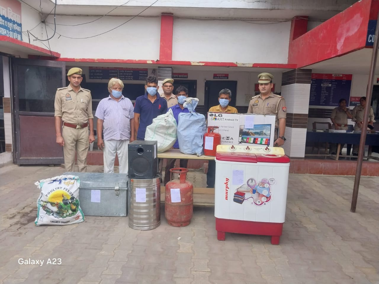 बिजनौर (परिपाटी न्यूज़)जनपद बिजनौर के चांदपुर में चांदपुर पुलिस ने चार चोर सहित चोरी का माल बरामद कर बड़ी चोरी की घटना का खुलासा किया है 3 दिन पहले चोरों ने गांव बमनोला में एक मकान का ताला तोड़कर घर का सामान चुरा कर ले गए थेप्राप्त समाचार अनुसार जनपद बिजनौर के थाना चांदपुर के गांव बमनोला में अज्ञात चोरों ने मकान का ताला तोड़कर घर का सामान लेकर फरार हो गए थे पुलिस ने मुखबीर की सूचना पर कार्यवाही करते हुए धुरैला के जंगल में बने एक ट्यूबवेल से चोरों को पकड़ा और चोरी का माल बरामद किया पुलिस ने बताया कि चोरों के कब्जे से