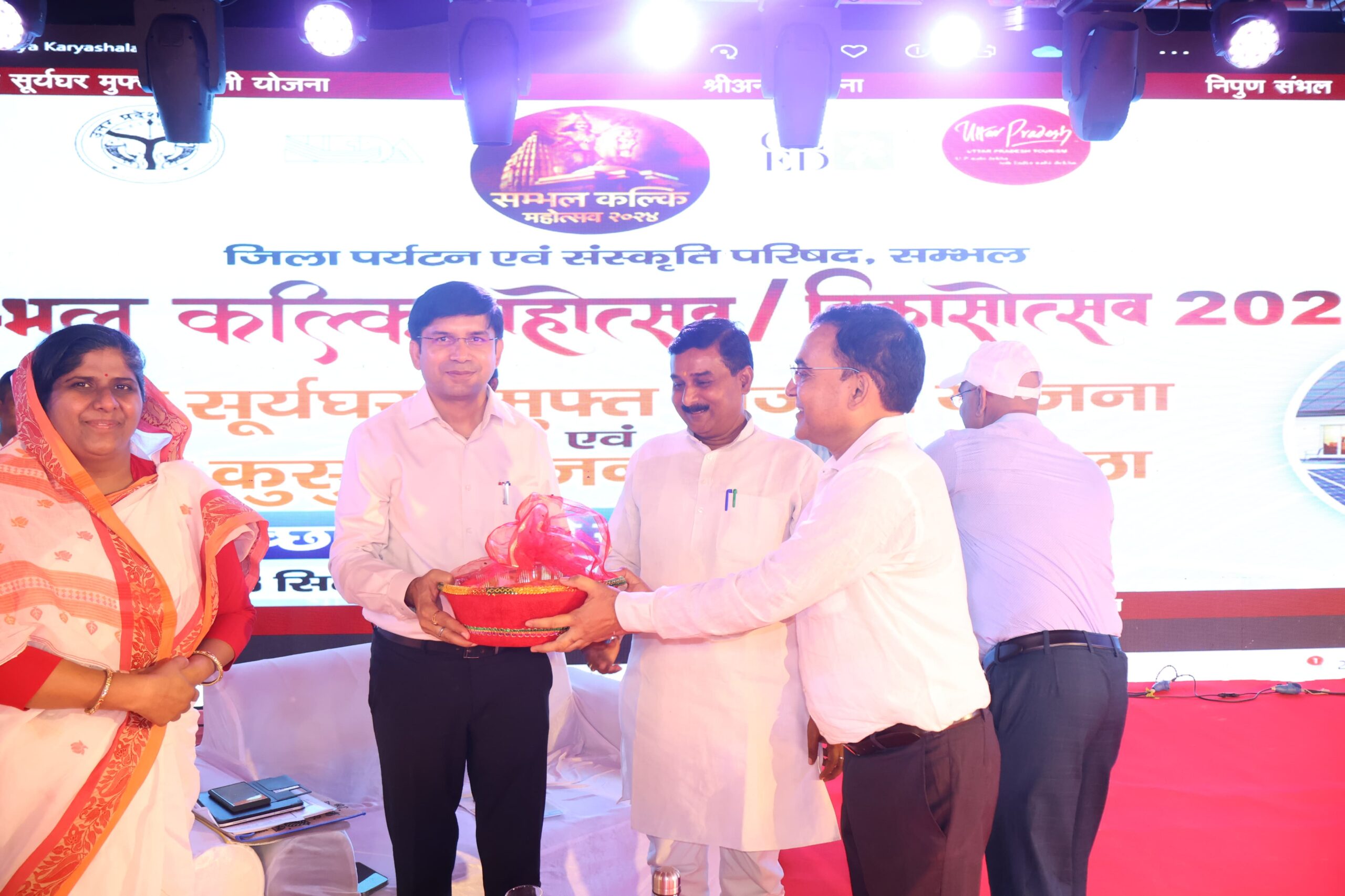 सम्भल ( परिपाटी न्यूज ) संभल की स्थापना दिवस के संदर्भ में “संभल कल्कि महोत्सव 2024 “बड़ा मैदान बहजोई में प्रारंभ हुआ| कार्यक्रम का उद्घाटन जिलाधिकारी डॉ.राजेंद्र पैंसिया जी एवं भारतीय जनता पार्टी जिला अध्यक्ष हरेंद्र रिंकू जी एवं पूर्व जिला अध्यक्ष ओमवीर खड़कवंशी जी द्वारा किया गया| दीप प्रज्ज्वलन जिला पंचायत अध्यक्ष अनामिका यादव द्वारा किया गया| मंच पर विभिन्न प्रकार शैक्षिक एवं रंगारंग के कार्यक्रम का आयोजन परिषदीय एवं कस्तूरबा गांधी आवासीय द्वारा किया गया| जिसमें प्रमुख कस्तूरबा