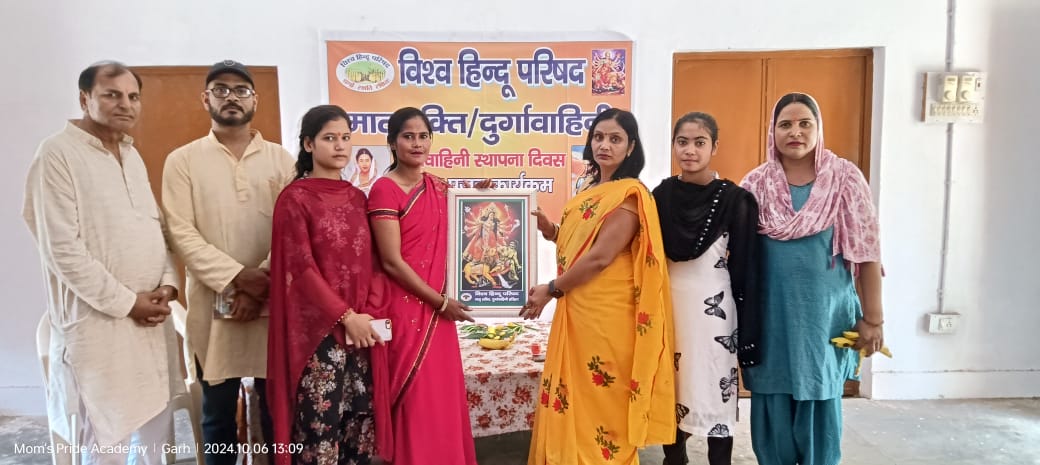 विवाह के 4 वर्ष पश्चात ही उनके पति दलपत शाह का निधन हो गया 3 वर्ष के बेटे को साथ लेकर उन्होंने अपने जीवन को आगे बढ़ाया कार्यक्रम की अध्यक्षता प्रखंड संयोजिका दुर्गा वाहिनी सुमित्रा ने करते हुए समाज को एकजुट रहने का संदेश दिया और उन्होंने सभी को बताया कि सभी हिंदू एक हैं कोई अगला पिछड़ा नहीं है सभी को संभव के साथ रहना चाहिए कार्यक्रम में मुख्य रूप से शोभा कमलेश कुमारी गीता देवी सुनीता यादव आरती रीना सीमा मीनू रोशनी कमल रूबी रेशमा सिमट बिजेंद्री हर्ष मीणा मेधावी आदि उपस्थित रही कार्यक्रम के अंत में सभी ने दुर्गा माता की आरती गई और आए हुए सभी बंधुओ ने कन्याओं के मस्तक पर तिलक लगाकर चरण स्पर्श कर पूजन किया और विधिवत शास्त्र का पूजन कर स्थापना दिवस कार्यक्रम को संपन्न किया कार्यक्रम के प्रेरणा स्रोत आयोजक व्यवस्थापक विश्व हिंदू परिषद के विशेष संपर्क प्रमुख सुनील गाबा वह उनके सहयोगी के रूप में सह जिला सेवा प्रमुख रवि चौहान रहे।