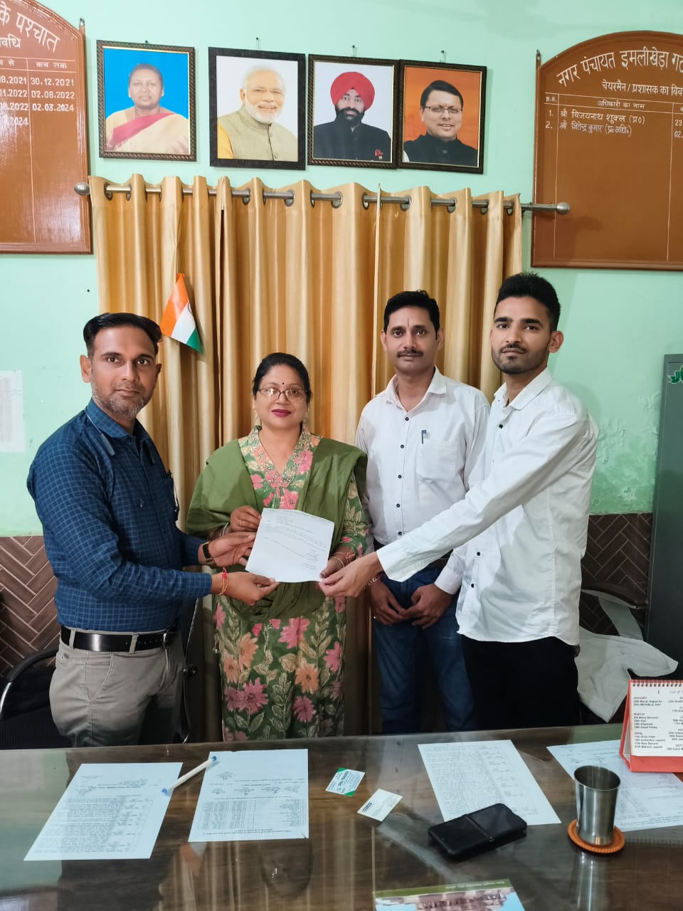 हरिद्वार (परिपाटी न्यूज) जिला हरिद्वार की नगर पंचायत इमलीखेड़ा में एक कार्यक्रम आयोजित किया गया।कार्यक्रम में नगर पंचायत इमलीखेड़ा की अधिशासी अधिकारी मंजू चौहान के द्वारा वरिष्ठ समाजसेवी,शिक्षाविद,हिंदी साहित्यकार एवं देवभूमि जागृति फाउंडेशन के राष्ट्रीय अध्यक्ष डॉ रजनीश सैनी को नगर पंचायत इमलीखेड़ा का ब्रांड एंबेसडर नियुक्त किया गया।यह सम्मान अधिशासी अधिकारी मंजू चौहान और वरिष्ठ सहायक आशु वर्मा,कनिष्ठ सहायक अनुज सैनी,साहब सिंह सैनी के द्वारा डॉ रजनीश सैनी को हिंदी साहित्य,शिक्षा, खेलकूद,समाज सेवा के क्षेत्र में कई वर्षों के कार्यों को दृष्टिगत रखते हुए दिया गया है।डॉ रजनीश सैनी वर्तमान में सर्व समाज हित,जन