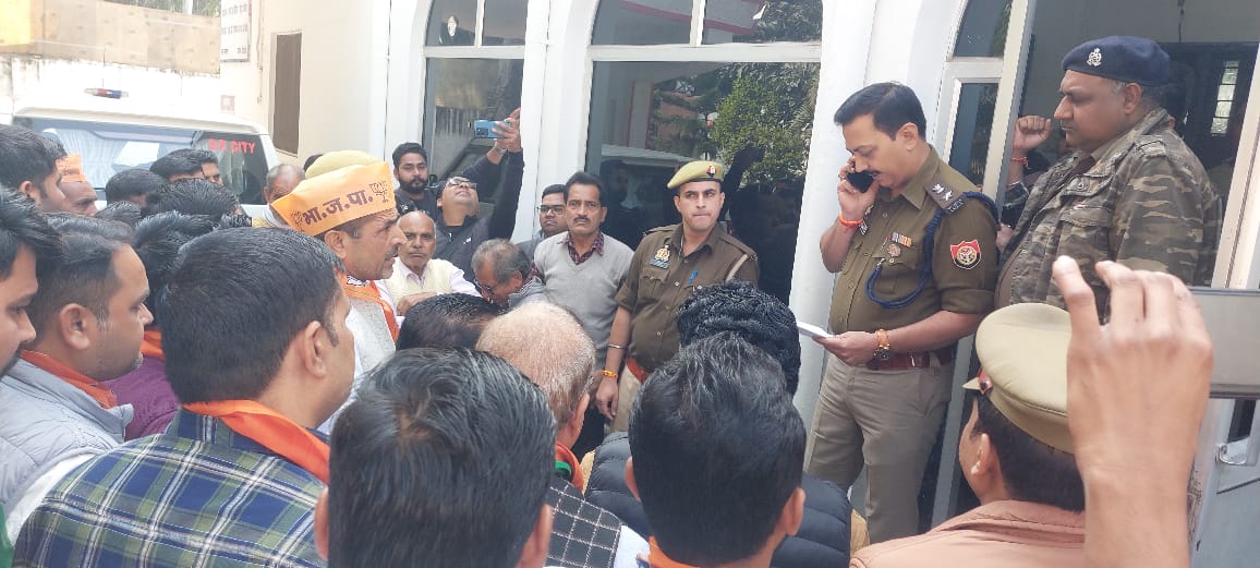 बिजनौर (परिपाटी न्यूज) भाजपा कार्यकर्ताओं की नूरपुर थाने में सुनवाई न होने पर एसपी ऑफिस पहुंचने पर एसपी से मिल, एसपी बिजनौर को पूरी नूरपुर थाने की लापरवाही बताई, लगभग एक महीना पहले आरोपी विपिन पुत्र रामपाल, विचित कुमार पुत्र टीकाराम, अनुज राणा पुत्र संग्राम सिंह, मनीश पुत्र नामालूम, तुषार पुत्र कुवरपाल के खिलाफ नूरपुर थाने में रिपोर्ट दर्ज कराई थी जिसमें आरोपी के खिलाफ कोई कार्रवाई न होने पर भाजपा नेता शिवअवतार पुत्र छोटिया सिंह निवासी ग्राम झाल, (थाना हीमपुर दीपा) अपने तमाम कार्यकर्ताओं के साथ नूरपुर थाने में चल रही मनमानी को लेकर एसपी ऑफिस पहुंचे और अभिषेक (एसपी बिजनौर) को बताया की उपरोक्त व्यक्तियों ने शटर का ताला तोड़कर डायमण्ड सिटी कालोनी मुरादाबाद रोड नूरपुर स्थित घर के अन्दर घुस कर जान से मारने की नियत से मेरे पुत्र सचिन कुमार पुत्र शिवअवतार नि० ग्राम झाल थाना