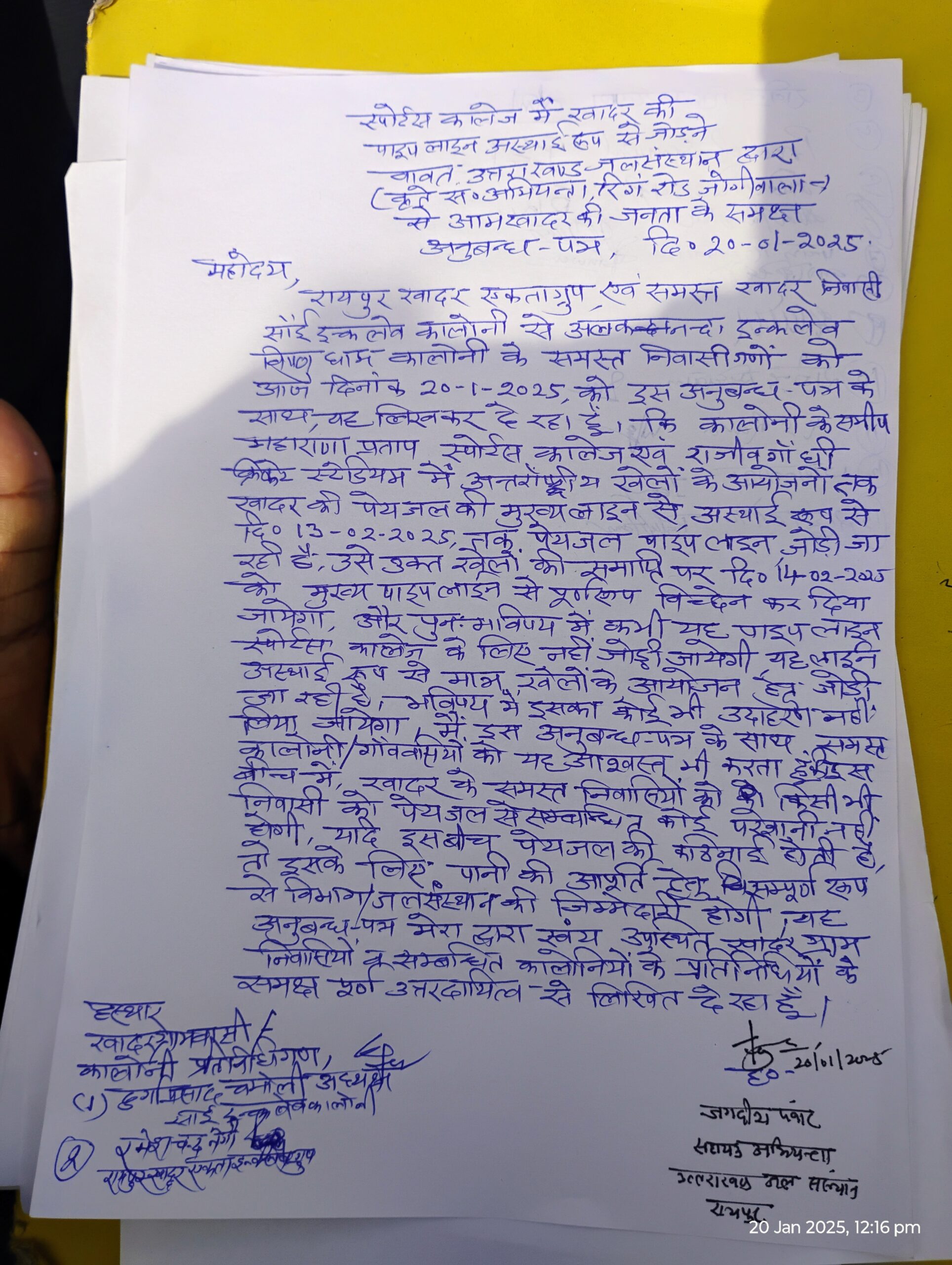 गांव वालों ने अपनी समस्त परेशानियों को बताया और कहा कि इतनी शिकायतों के बाद भी आप या आपके कर्मचारी ना तो यहां आपके देखते है और ना ही कोई सुधार करवाते है। जगह जगह पर पानी की लाइन टूटी पड़ी है। उन पर आप किसी का ध्यान नहीं है। और इस काम के लिए आप सभी तुरंत आ गए। जिस पर सहायक अभियंता(SDO) ने सभी को आश्वस्त करते हुए यह कहा कि ये पाइपलाइन वैकल्पिक तौर पर जोड़ी जा रही है। यदि आपको इस दौरान पानी की कोई दिक्कत आती है तो टैंकर द्वारा पानी की व्यवस्था कराई जाएगी।
