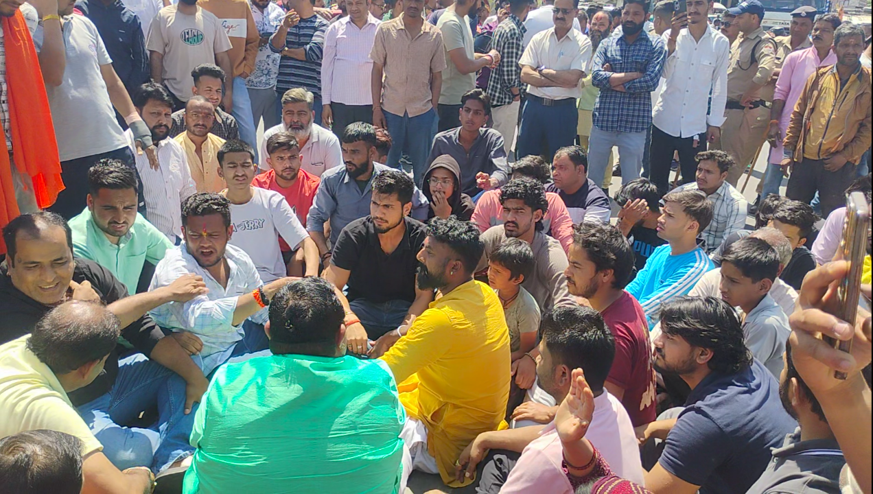 परन्तु प्रशासन को इस शिकायत में कोई रुचि ना देखते हुए सभी लोगों ने एकत्रित होकर रायपुर चौक पर जाम लगाया और कई घंटे प्रदर्शन किया। प्रदर्शनकारियों ने नवरात्रों में दूसरे समुदाय के इस रवैया का विरोध किया और मीट की सभी दुकान नवरात्रियों में बंद करने के लिए नारे लगाए। प्रशासन को जाम की सूचना मिलते ही सी ओ सिटी, पुलिस के सिपाहियों सहित मौके पर पहुंची और मामले का जायजा लिया।