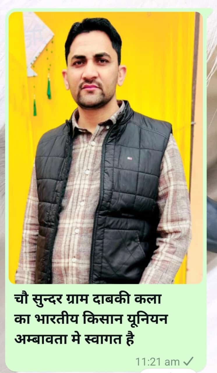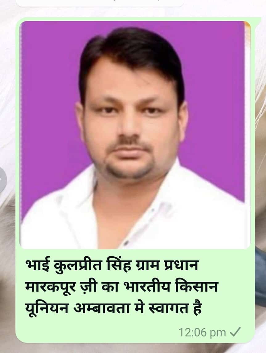 भारतीय किसान यूनियन अम्बावता के प्रदेश प्रभारी उत्तराखंड सचिन चौधरी के नेतृत्व में संगठन को ओर मजबूत करते हुए एक मजबूत टीम का गठन किया गया जिसमें खानपुर लक्सर विधानसभा व अन्य विधानसभा के ग्राम प्रधान बीडीसी व पूर्व ब्लॉक प्रमुख जैसे क्षेत्र के नामचीन चेहरौ कों भारतीय किसान यूनियन अम्बावता की सदस्यता दिलाई गई जिनमें ग्राम प्रधान दाबकी कला ं-चौधरी वीरेंद्र सिंह, ग्राम प्रधान मुंडा खेड़ा- सहदेव चौधरी, एडवोकेट प्रशांत जी, राकेश शर्मा जी, ग्राम बहादुरपुर -अनुज शर्मा, ग्राम खानपुर सोनू भाई, बदरपुर जाट निवासी शकील भाई, ग्राम प्रधान मारकपुर कुलप्रीत सिंह, ग्राम हबीबपुर कुंडी निवासी रवि भाई, ग्राम प्रधान ऐंथल बुजुर्ग -करमजीत भाई, निजामुद्दीन खान, ग्राम प्रधान रूहलकी- चौधरी गोपाल गुर्जर, ग्राम थिथोला (लंढोरा) निवासी- समीर राणा, ग्राम रायसी निवासी- ठाकुर दीपक, ग्राम सुल्तानपुर निवासी सागर सैनी, ग्राम दाबकी कला- निवासी चौधरी सुंदर, रायसी निवासी नागपाल नगर, ग्राम आलमपुरा निवासी- जोरा सिंह, ग्राम लक्सर निवासी मौ.आरिफ, ग्राम दाबकी निवासी- एडवोकेट सचिन चौधरी, ग्राम प्रधान प्रहलादपुर -चौधरी प्रदीप जी, ग्राम प्रधान बहादुरपुर- पंकज राणा, ग्राम प्रधान बिजोपुरा-चौधरी जसविंदर सिंह, ग्राम डोसनी निवासी सत्येंद्र चौधरी, खानपुर निवासी अखलाक साबरी आदि भारी संख्या में भारतीय किसान यूनियन अम्बावता से लोग जुड़ रहे हैं।