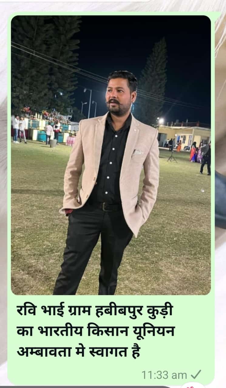 हरिद्वार (परिपाटी न्यूज) लक्सर, भारतीय किसान यूनियन अम्बावता के प्रदेश प्रभारी उत्तराखंड सचिन चौधरी ने कहा कि भारतीय किसान यूनियन अम्बावता का पूरे देश में परचम लहरायेगा। यह यूनियन किसानों के हित के लिए गाँव गाँव जाकर सभी को जागरुक कर रही है और लगातार करती रहेगी।