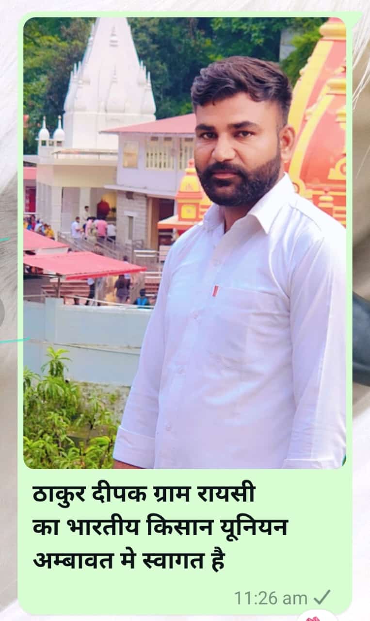 देश का किसान ही अन्न दाता है तो उसे हर हाल में अन्नदाता का सम्मान मिलना ही चाहिए। भारतीय किसान यूनियन अम्बावता किसानों की हर समस्या का समाधान करेगी तथा लगातार भारतीय किसान यूनियन अम्बावता में कार्यकर्ता और पदाधिकारी जुड़ रहे है।ं