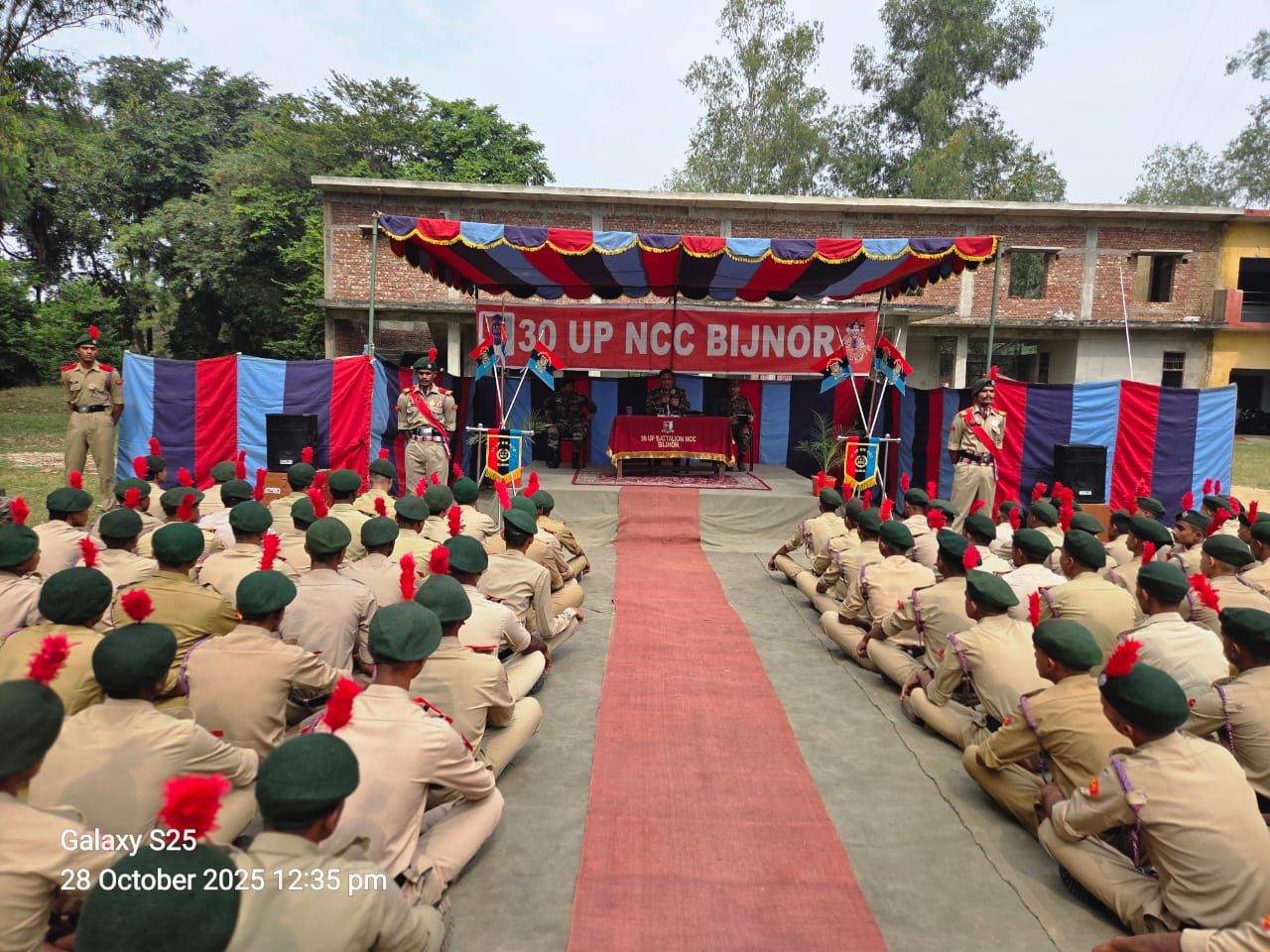 बिजनौर (परिपाटी न्यूज़ ) ख़बर उत्तर प्रदेश के जनपद बिजनौर के निकट वर्ति क्षेत्र विदुर कुटी से है जहाँ एक कैंप का आयोजन एस वी जी जी इंटर कॉलेज विदुर कुटी बिजनौर में 30 यूपी बटालियन एनसीसी बिजनौर के द्वारा दिनांक 27 अक्टूबर से 3 नवंबर 2025 तक आयोजित किया जा रहा है । जिसमें एन सी सी निदेशालय लखनऊ के निर्देशन में संचालित इस कैंप में उत्तर प्रदेश के 11 ग्रुप से 510 एनसीसी कैडेट प्रतिभाग कर रहे हैं। आज कैंप के तीसरे दिन कमांडिंग ऑफिसर कर्नल रोहिताश शर्मा के निर्देशन में कैडेट्स ने 9 किलोमीटर की अपनी ट्रैकिंग पुरी की ।साथ ही साथ कैडेट्स की दूसरी टीम हैदरपुर वेटलैंड की अपनी यात्रा संपन्न की।
