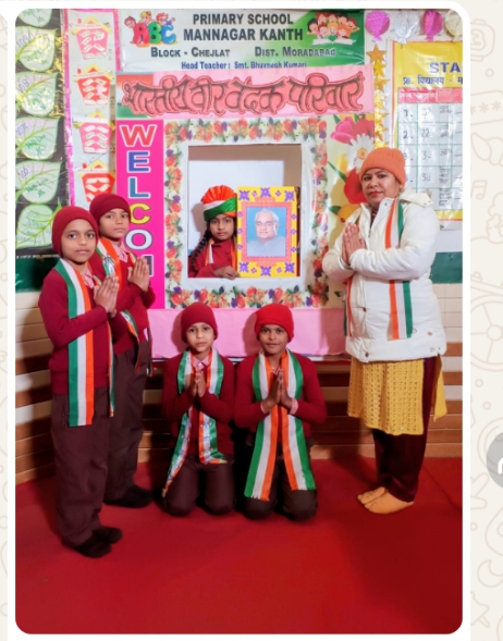 मुरादाबाद (परिपाटी न्यूज़) कांठ प्राथमिक विद्यालय माननगर कांठ में मनाया गया अटल बिहारी वाजपेई जी का जन्म दिवस अटल बिहारी वाजपेई जी का जन्म 25 दिसंबर 19 24 को ग्वालियर मध्य प्रदेश में हुआ था इनके पिता कृष्ण बिहारी वाजपेई एक अच्छे शिक्षक थे और उनकी माता कृष्णा देवी थी अटल बिहारी जी ने अपनी प्रारंभिक शिक्षा ग्वालियर के सरस्वती शिशु मंदिर और एवीएम स्कूल से प्राप्त की उन्होंने विक्टोरिया कॉलेज(अब महारानी लक्ष्मी बाई कॉलेज आफ एक्सीलेंस) से अंग्रेजी हिंदी और राजनीति शास्त्र में स्नातक उपाधि