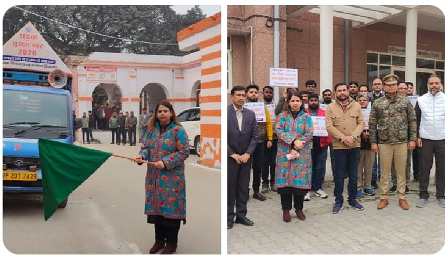 जनपद बिजनौर में सड़क दुर्घटनाओं में कमी लाने एवं आमजन को यातायात नियमों के प्रति जागरूक करने के उद्देश्य से आज 01 जनवरी 2026 को कलेक्ट्रेट परिसर से सड़क सुरक्षा माह का विधिवत शुभारंभ किया गया। इस अवसर पर जिलाधिकारी ने हरी झंडी दिखाकर सड़क सुरक्षा जागरूकता वाहन को रवाना किया, जो जनपद के शहरी व ग्रामीण क्षेत्रों में भ्रमण कर लोगों को सुरक्षित यातायात के संदेश देगा।
