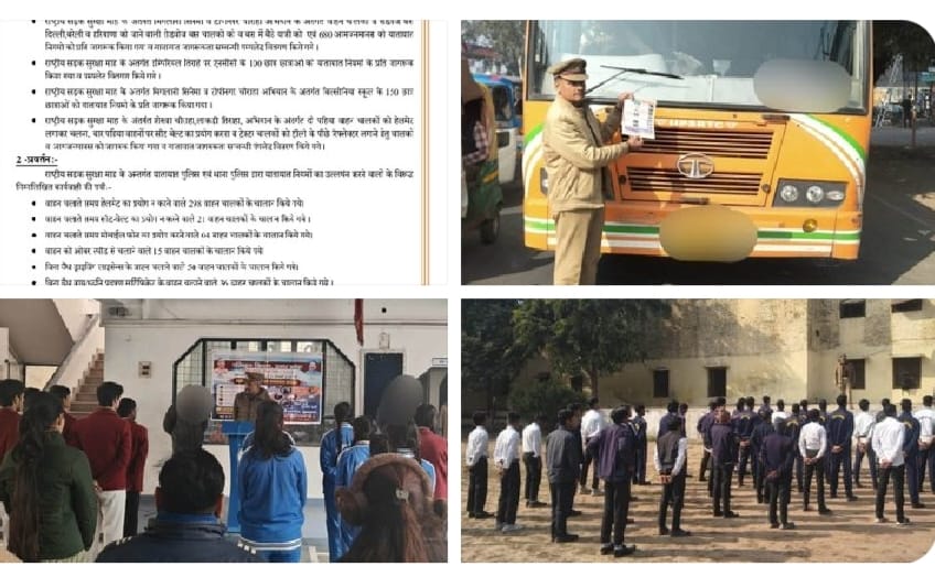 जानकारी दी गई। इसके साथ ही जागरूकता संबंधी पर्चे वितरित कर लोगों को सुरक्षित यातायात के लिए प्रेरित किया गया। अभियान के दौरान यातायात नियमों का उल्लंघन करने वाले वाहन चालकों के विरुद्ध मोटर वाहन अधिनियम के अंतर्गत कार्रवाई भी की गई। अधिकारियों ने बताया कि सड़क दुर्घटनाओं में कमी लाने और जनहानि को रोकने के लिए इस तरह के अभियान अत्यंत आवश्यक हैं। पुलिस प्रशासन ने नागरिकों से अपील की कि वे स्वयं के साथ-साथ दूसरों की सुरक्षा को ध्यान में रखते हुए यातायात नियमों का पालन करें। राष्ट्रीय सड़क सुरक्षा माह के तहत यह अभियान पूरे जनवरी माह लगातार जारी रहेगा।