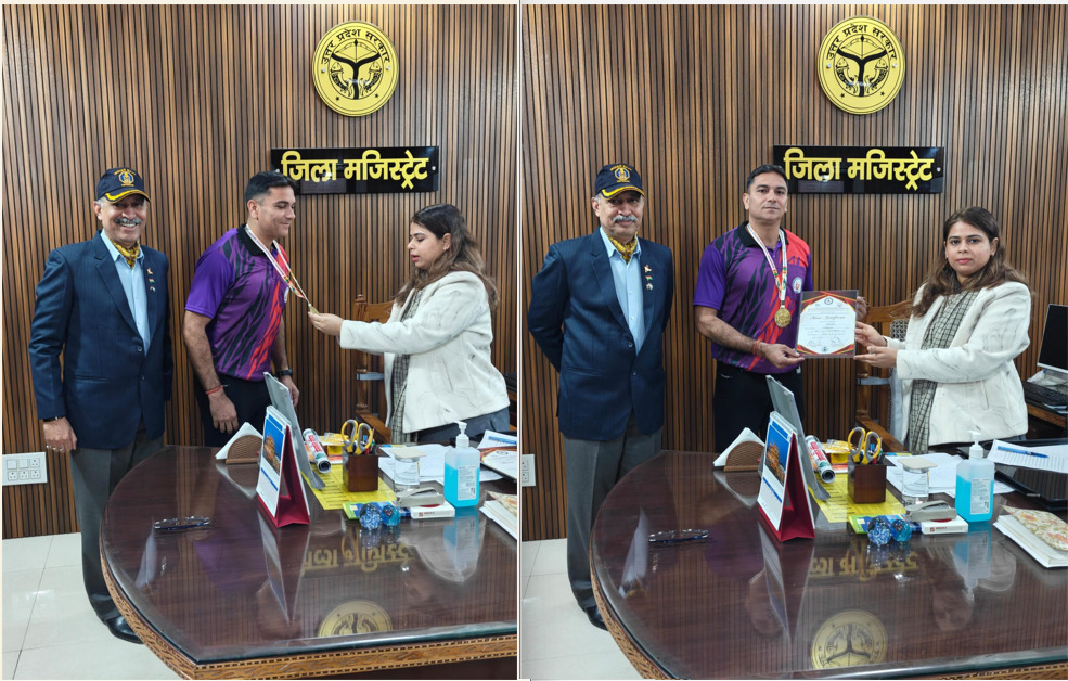 बिजनौर (परिपाटी न्यूज़) जिलाधिकारी जसजीत कौर ने आज अपने कार्यालय कक्ष में 46वीं राष्ट्रीय मास्टर्स एथलेटिक्स चैम्पियनशिप–2026 में स्वर्ण पदक जीतकर जिले और प्रदेश का नाम रोशन करने वाले पूर्व सैनिक हवलदार तरुण कुमार को सम्मानित किया। इस अवसर पर जिलाधिकारी ने उन्हें शुभकामनाएँ देते हुए कहा कि तरुण कुमार की यह उपलब्धि अनुशासन, कड़ी मेहनत और निरंतर अभ्यास का परिणाम है, जो युवाओं एवं खिलाड़ियों के लिए प्रेरणास्रोत है। जिलाधिकारी ने कहा कि खेल के क्षेत्र में इस प्रकार की उपलब्धियाँ न केवल व्यक्ति विशेष का गौरव बढ़ाती हैं, बल्कि पूरे जिले की पहचान को राष्ट्रीय और अंतरराष्ट्रीय स्तर पर मजबूत करती हैं। उन्होंने विश्वास व्यक्त किया कि तरुण कुमार आगे भी इसी लगन और समर्पण के साथ देश का नाम रोशन करते रहेंगे। इस