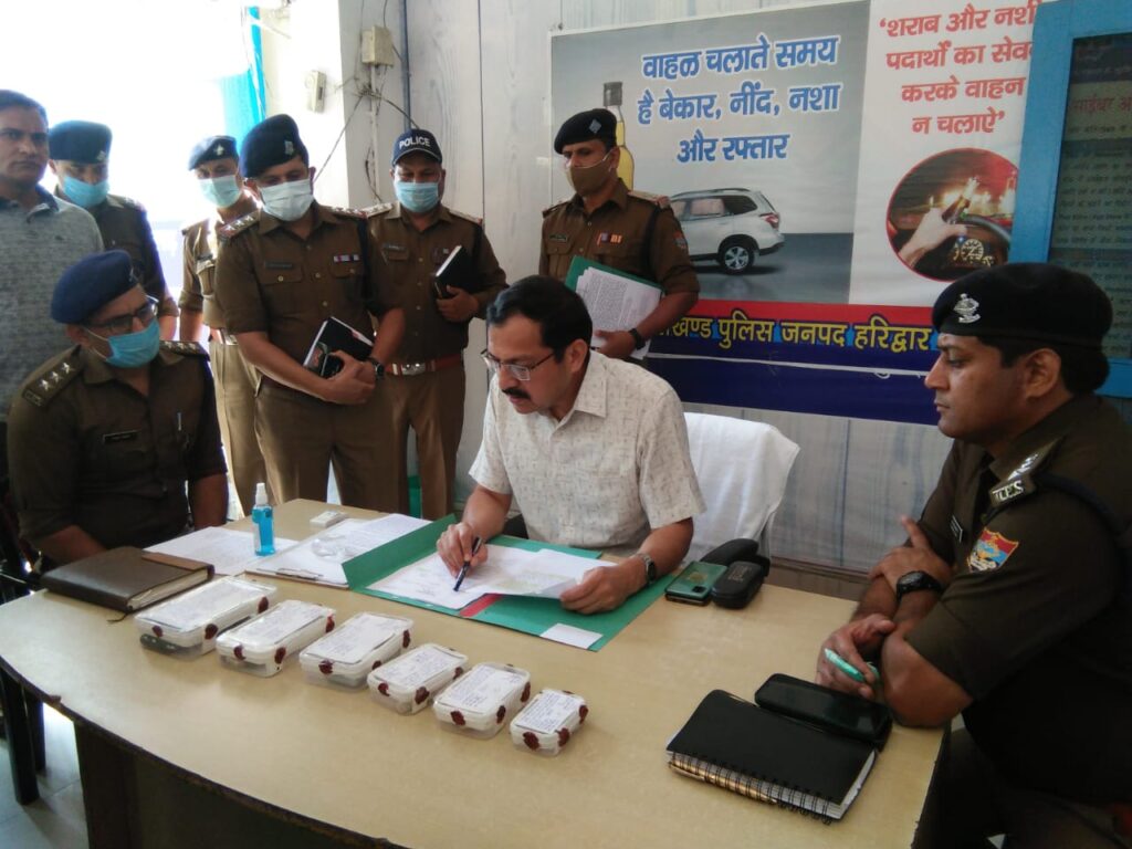 आपको बता दें कि कोतवाली सिविल लाइंस में घटना का खुलासा करते हुए एसएसपी हरिद्वार डॉक्टर योगेंद्र सिंह रावत ने बताया कि जिले में मादक पदार्थों की तस्करी करने वाले अपराधियों पर अंकुश लगाने के लिए कड़े निर्देश दिए गए हैं। इसी कड़ी में गंगनहर कोतवाली पुलिस को 25 अक्टूबर को सूचना प्राप्त हुई कि क्षेत्र में स्मैक तस्कर स्मैक बेचने की फिराक में हैं जिसमें पुलिस टीम को मतलबपुर तिराहे के पास से तीन आरोपियों को गिरफ्तार किया गया। आरोपियों के पास से करीब 150 ग्राम स्मैक बरामद की गयी है। पुलिस तीनों अभियुक्तों के खिलाफ एनडीपीएस एक्ट के अंतर्गत मुकदमा पंजीकृत कर जेल भेजने की तैयारी कर रही है साथ ही बरामद स्मैक की कीमत दस लाख रुपये बताई जा रही है और अभियुक्तों को न्यायालय के समक्ष पेश किया जा रहा है।